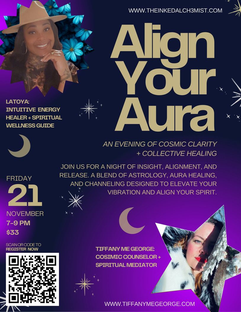I will offer a group aura reading and healing designed to clear energetic residue and help you realign with your true frequency.